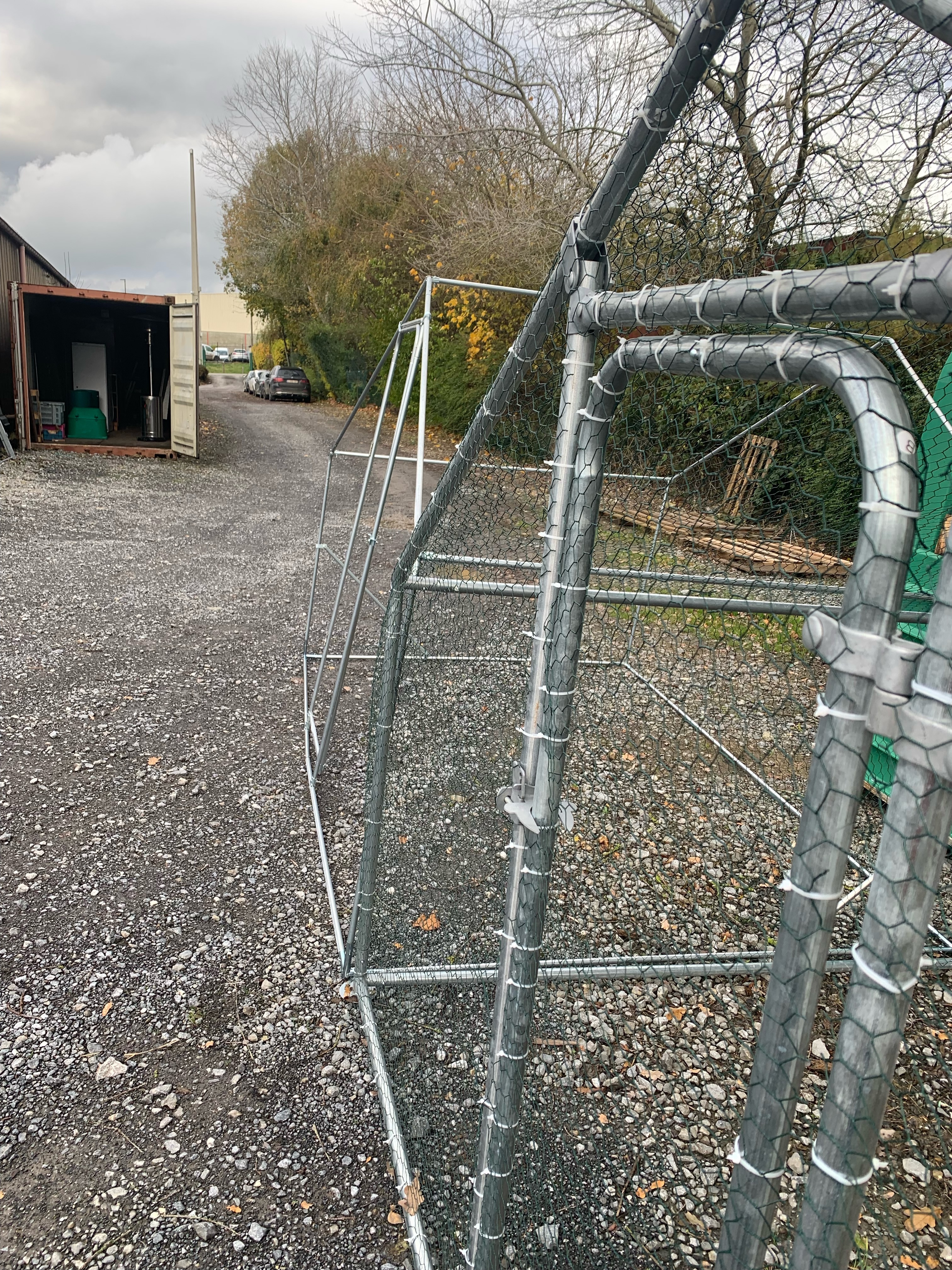 Cet enclos grillagé pour les volailles de 6 ou 18 m² est idéal si vous désirez offrir à vos poules un bel espace pour gambader en toute sécurité à l'abri de la fouine et du renard sans devoir mettre de filet pour volailles.