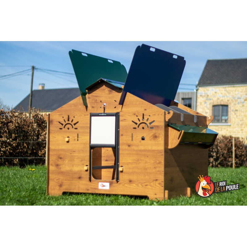 Possibilité d’ouvrir le toit du poulailler en entier pour un accès facile.